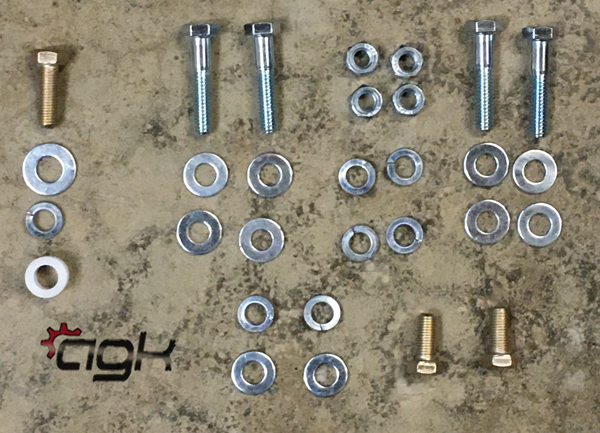 When mounting an engine to your Azusa Fun Kart you need this kit. Included in the kit are 4 bolts with washers and hex nuts to mount the engine to the motor plate. There are two bolts with washers used to mount the chain deflector to the engine. The last bolt in the kit has washers and is used to secure the clutch on the output shaft.